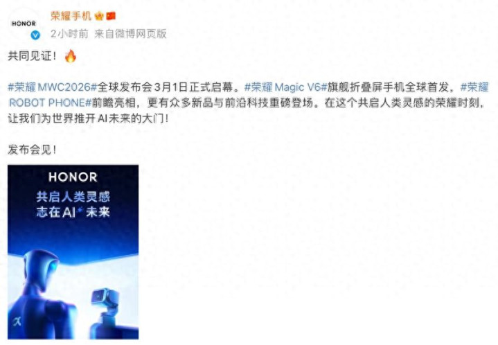 荣耀官宣旗下新一代大折叠屏Magic V6将于3月1日MWC2026期间全球发布,直指满血旗舰性能、Ultra级影像与长续航三大痛点。这是否意味着折叠屏将彻底告别“妥协”时代?